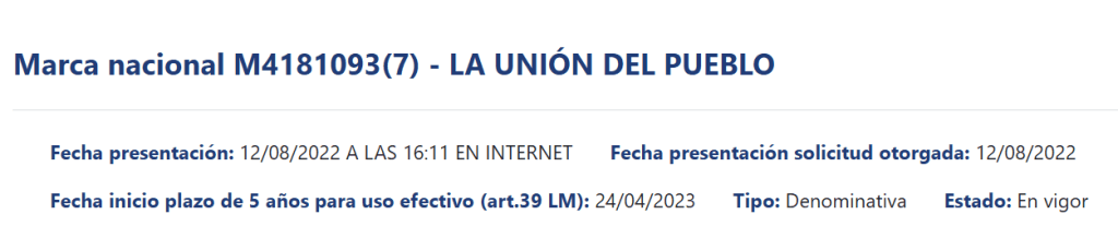 La nueva Unión del Pueblo está registrada por nuestro jefe de redacción y editor, según el documento que adjuntamos, después de que fuera él quien pusiera en marcha la segunda época de La Unión del Pueblo, que se extiende desde noviembre de hasta …., fecha en la que surgieron problemas dentro del Partido de los Trabajadores de España y se editaron dos revistas paralelamente, ya que los responsables del Partido de los Trabajadores de España no aceptaron que el periódico ya no era suyo, máxime después de que con fecha dicho partido fuera declarado ilegal por orden judicial.